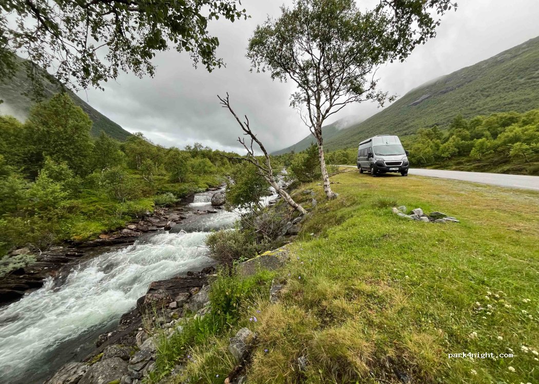 Anfahrtsstraße entspricht einer üblichen Passstraße in Norwegen. Anfahrt mit unserem Bus war kein Problem. Platz selbst hat traumhafte Aussicht. direkt an einem Flüsschen. empfehlen kann man eine Wanderung an den Wasserfällen.