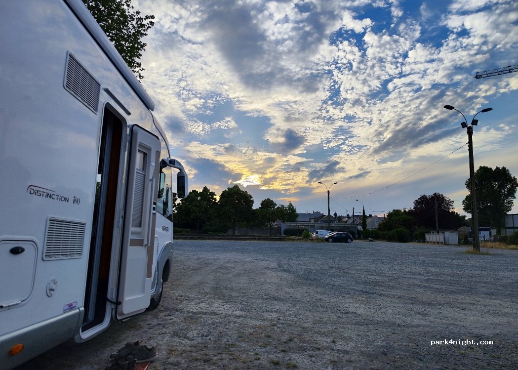 Parking très calme. Nous y passons actuellement la soirée et la nuit. Des voisins sont venus discuter avec nous, nous avons passé un bon moment. Boulangerie à 300 mètres environ à pied. Le vieux Mans à 1 km. Vraiment bien pour une nuit.