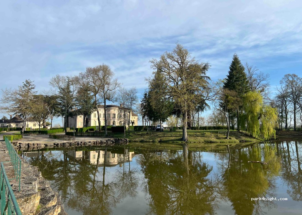 Stor camping i lummig slottspark. Dyrt (44€ inkl el och eget vatten) men prisvärt. Finns pool, pizzeria, restaurang, shop och sanitetshus. Slottets eget vin finns att köpa. Trevlig personal. Stor avfallsanläggning.