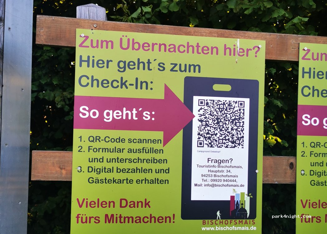 Der Parkplatz ist super zum Übernachten. Er ist zwar sehr offen und direkt an der Straße aber man kann sich zB mit der Tür Richtung Maisfeld stellen. Es wurde eine Tafel aufgestellt, dort ist ein QR Code um die Kurtaxe zu zahlen. Das funktioniert einwandfrei, für eine Nacht und eine Person sind es 2€.