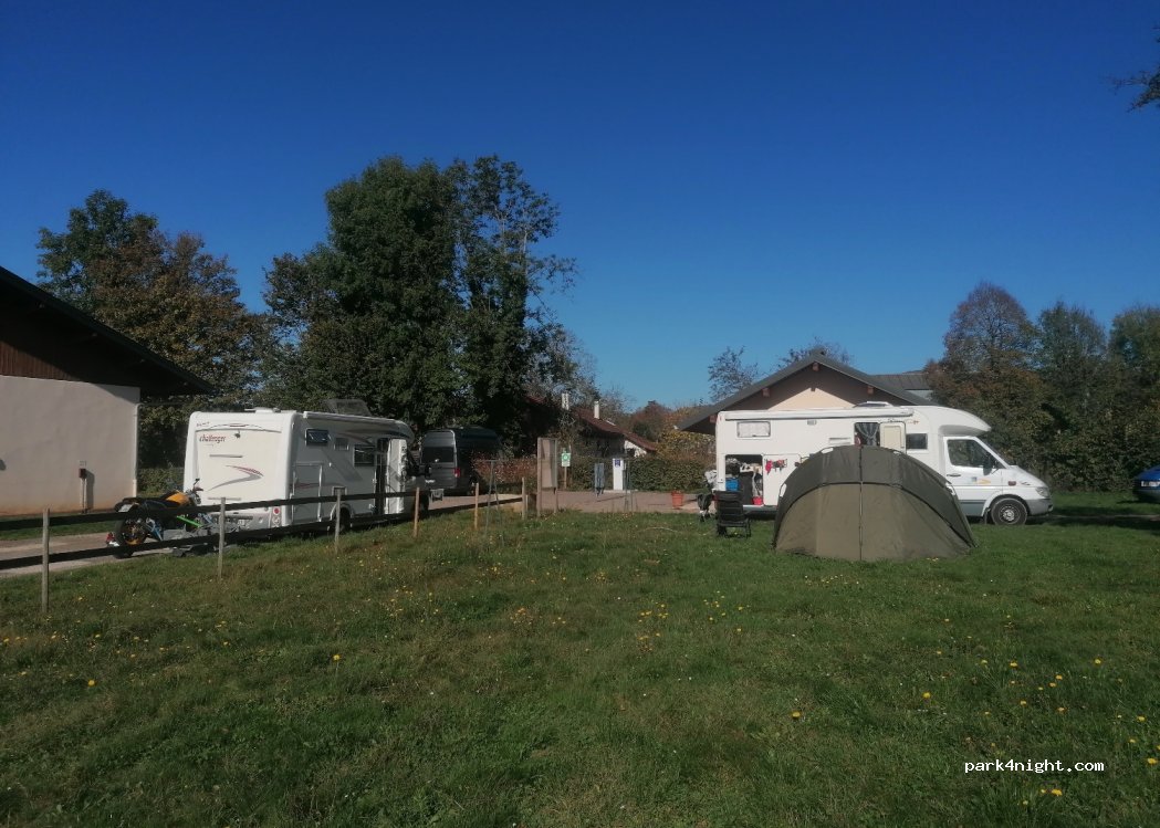 All pitches are on grass, relatively flat, sunny, and clearly marked, with an unobstructed view of the mountains. All pitches have a 6A (1200W) electrical outlet. Air conditioning and other energy-consuming appliances are not permitted.