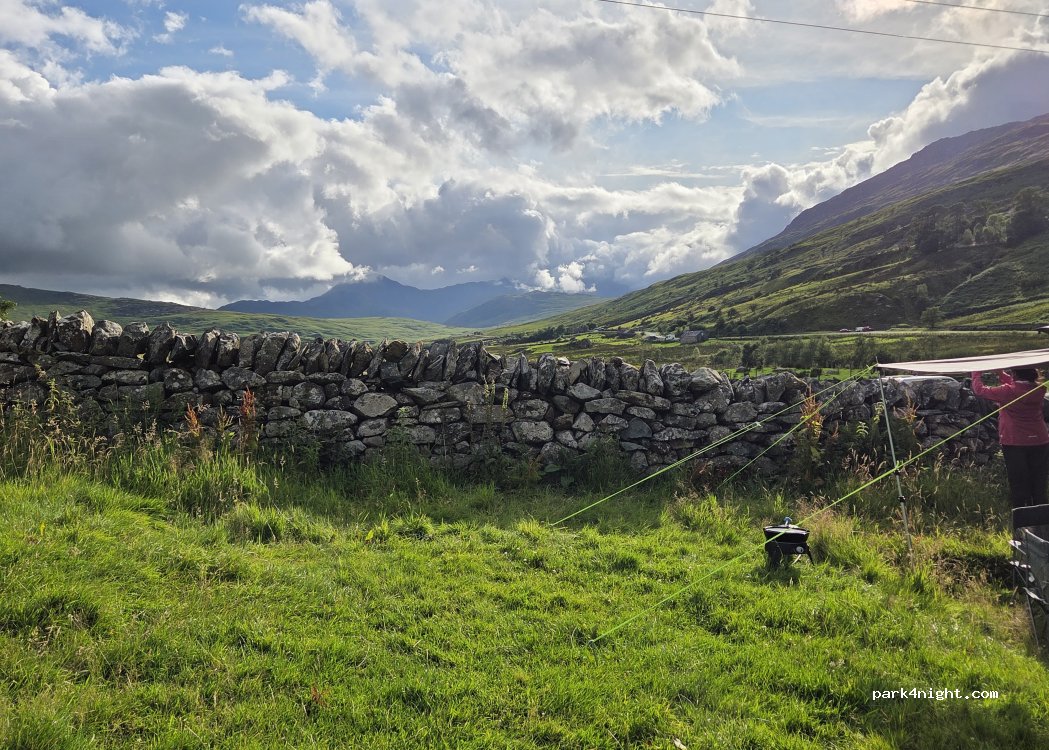 Great budget site, pretty views, a decent size field to park the van and basic but adequate facilities. The shower blocks were clean and tidy. We particularly liked being able to walk to the Glyders route from the campsite. Recommended.