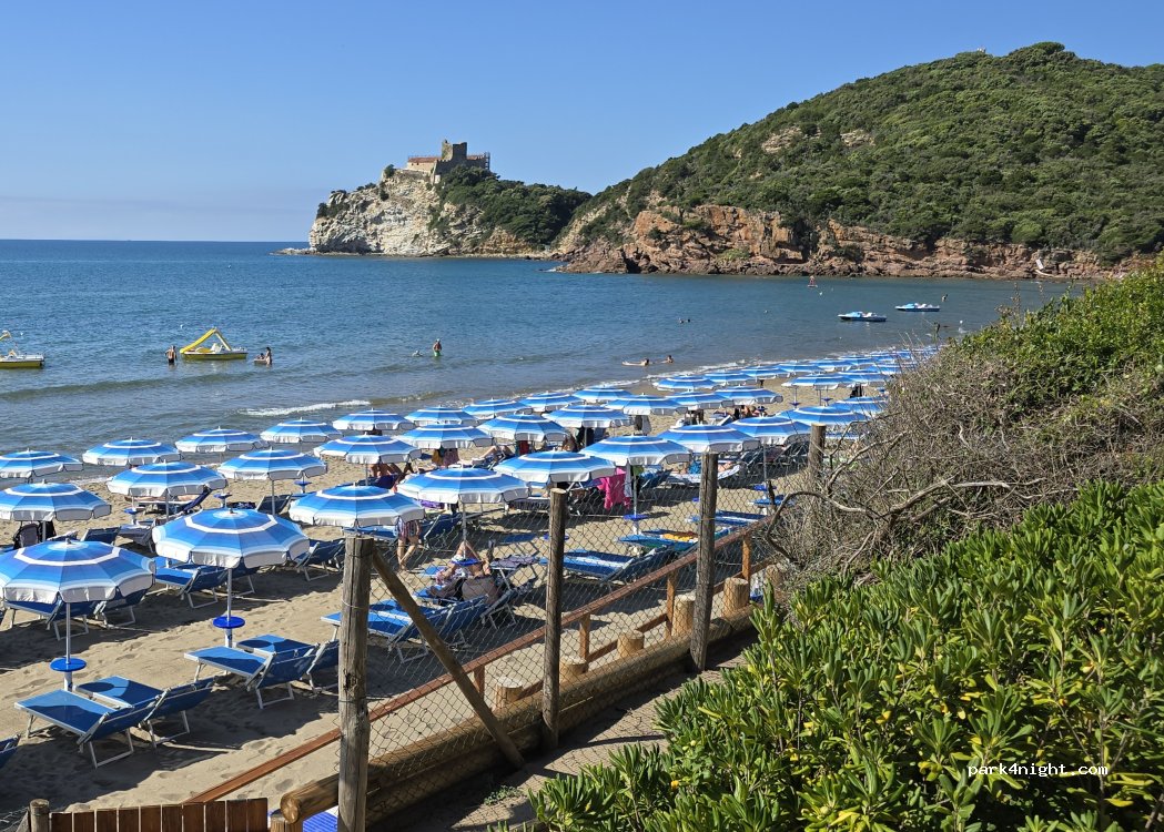 Camping Village "Baia Azzurra"; Many pitches available, possibility of loading and unloading water on the pitch; Swimming pools; Bar and Restaurant; Beach 5 min. from the campsite which can be reached by a private path.