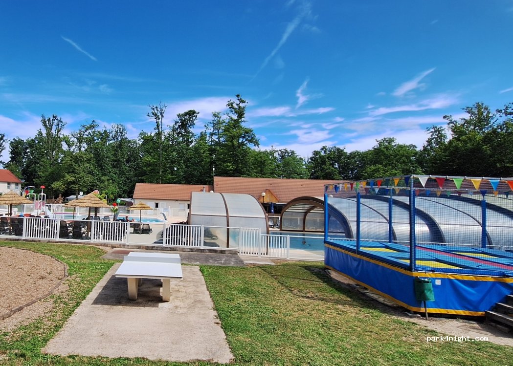 Camping avec beaucoup de services. mais pourtant calme ! emplacements généreux, arborés. le paradis pour les enfants (trampoline, parcours, piscine, toboggan) pour tous les âges. le soir, on a eu la chance de voir des montgolfières passer... couple a l'accueil adorable.