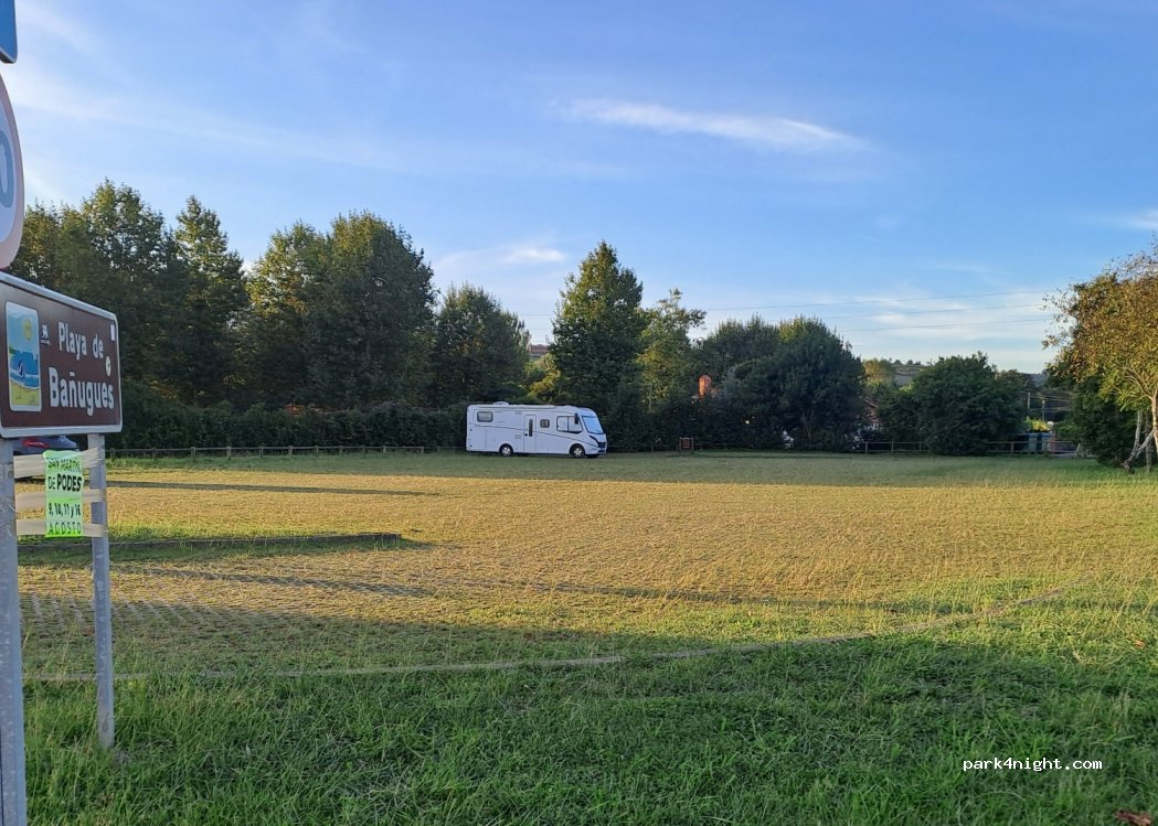 Bañugues picnic area. Overnight stays are not allowed. It is wide although it is possible that it is saturated on beach days.
