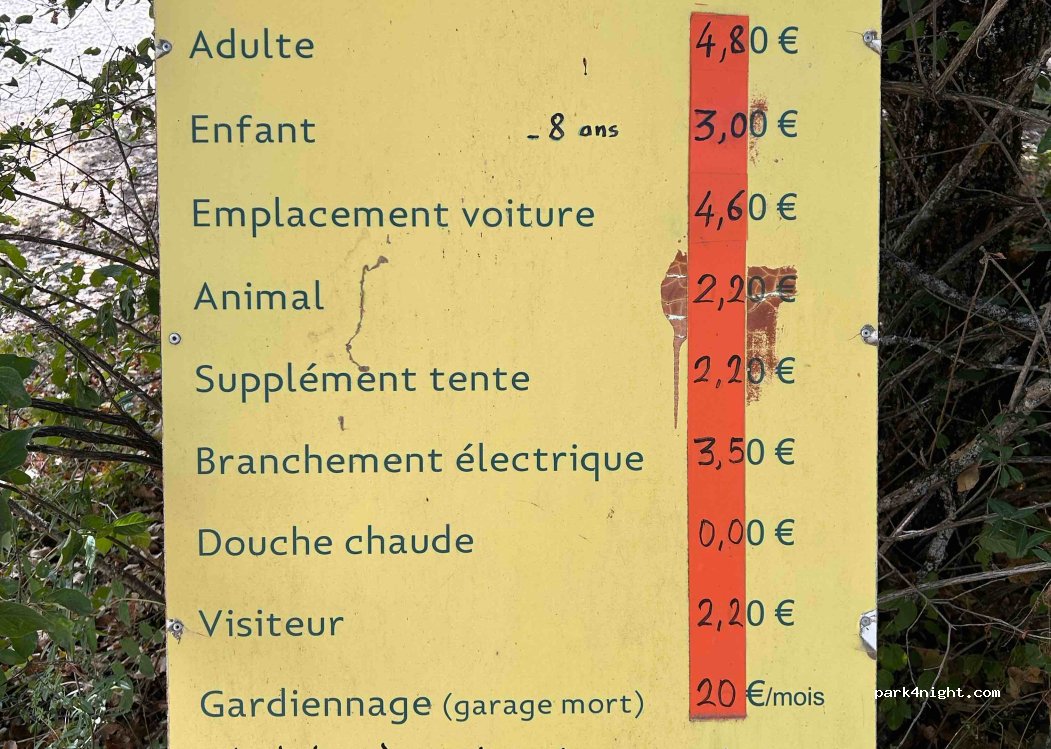 camping dans un cadre naturel a peine 14 EUR sans électricité pour un fourgon et deux personnes, de bel emplacement au choix en cette saison, sanitaire sobre mais très propre, en chaude notamment pour les douches. des bières brassé localement en vente, brasserie de cordoeil où nous n'étions passer dans le même village patron sympathique