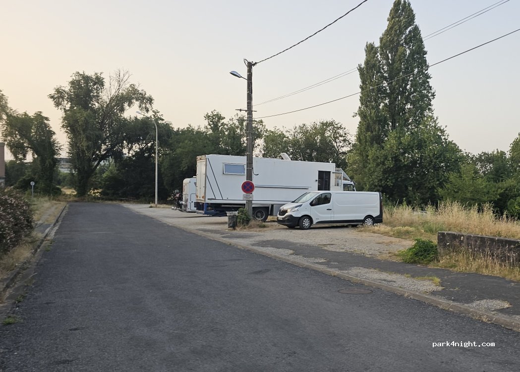 Le lieu, un peu désertique, prêt de bâtiments semblant abandonnés a pu inquiéter les camping carristes précédent mais a plusieurs cc je pense que c'est ok ; c'est plat, ça peut accueillir de nombreux véhicules et à été parfait pour nous : déjeuner puis visite d'Angoulême.Pas de nuit. Et oui, ça grimpe pour atteindre la ville, rien d'infaisable.