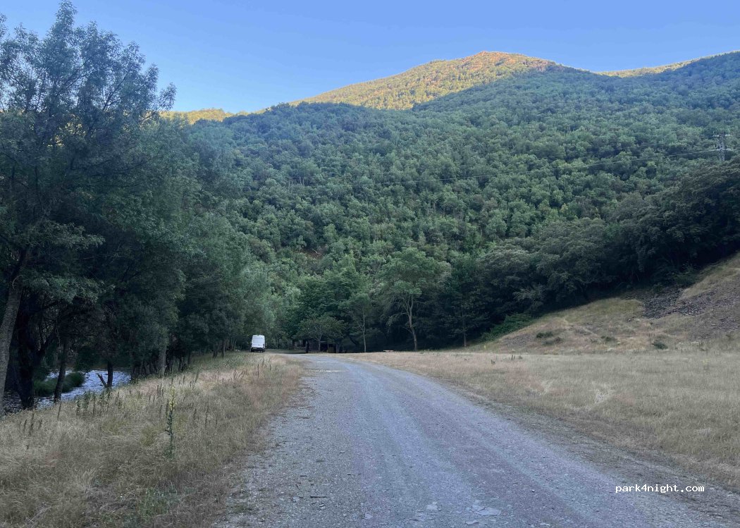 De plek is geweldig, wat een rust. Weinig verkeer over de weg. Officieel niet kamperen/ overnachten locatie. Buiten het hoogseizoen geen probleem.