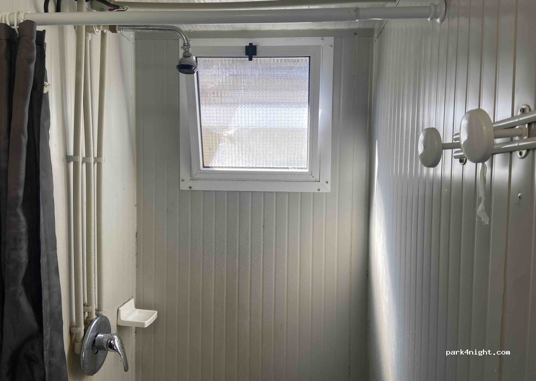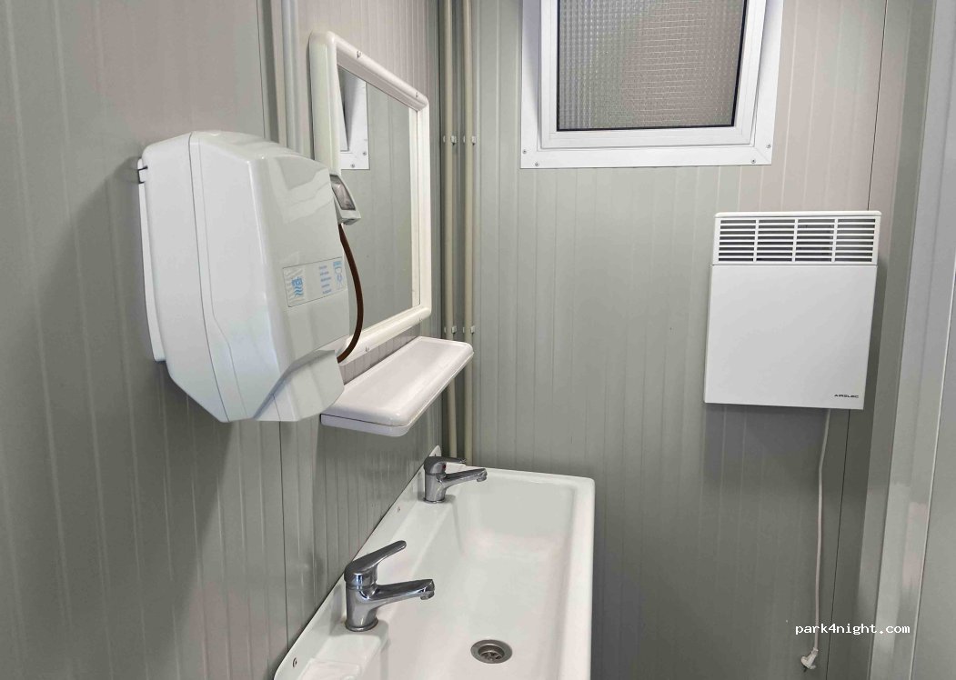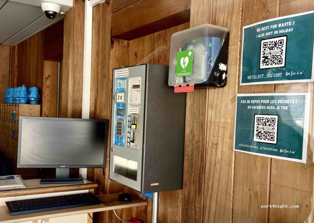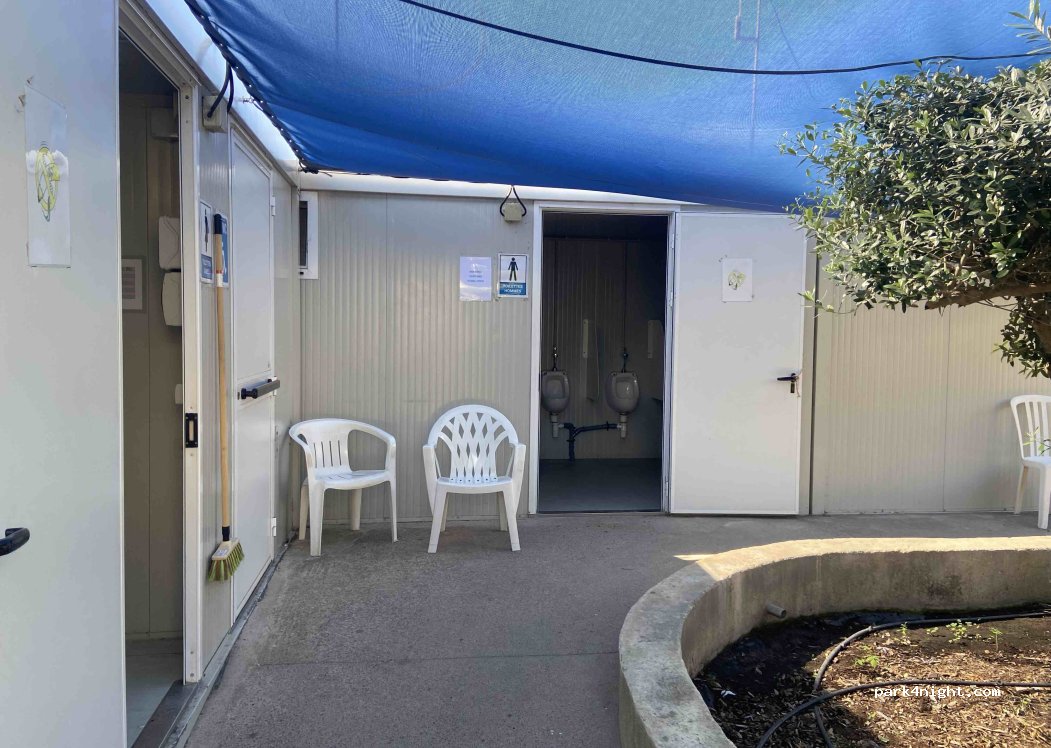 Super plan pour la douche avec les jetons à 2€. Accès à 6min d'eau consécutives. Peut convenir pour doucher deux personnes. Accès à des robinets pour remplir les réserves d'eau dans les WC qui sont eux gratuits.