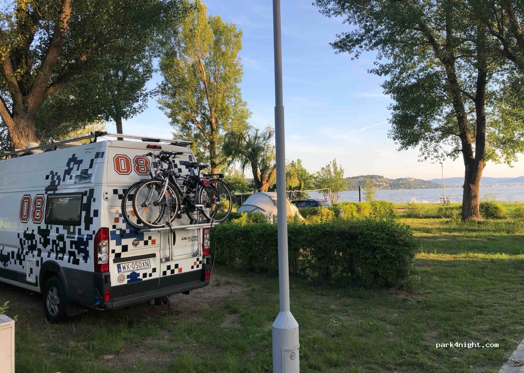 Camping Platz direkt am Plattensee in Zamárdi. Enthalten im Preis sind Strom, Wasser und freie Internetabdeckung über den gesamten Platz (WiFi / 10Mbit). Wasserentsorgung, Toilettenentsorgung, Waschmaschine, Kochstellen vorhanden. Fahrradverleih (teuer) und Restaurants, sowie mMini-Supermarkt auf dem Platz. Besonders empfehlenswert ausserhalb der Sommerferien (15.6.-31.8.). Kleiner eingezäunter Hundeauslaufbereich mit eigenem Seezugang im hinteren Campingplatzbereich, Straße 14.