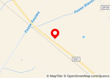 Area stazione di servizio con ampio parcheggio, servizi igienici e doccia gratuita accessibile 24h / 24h.