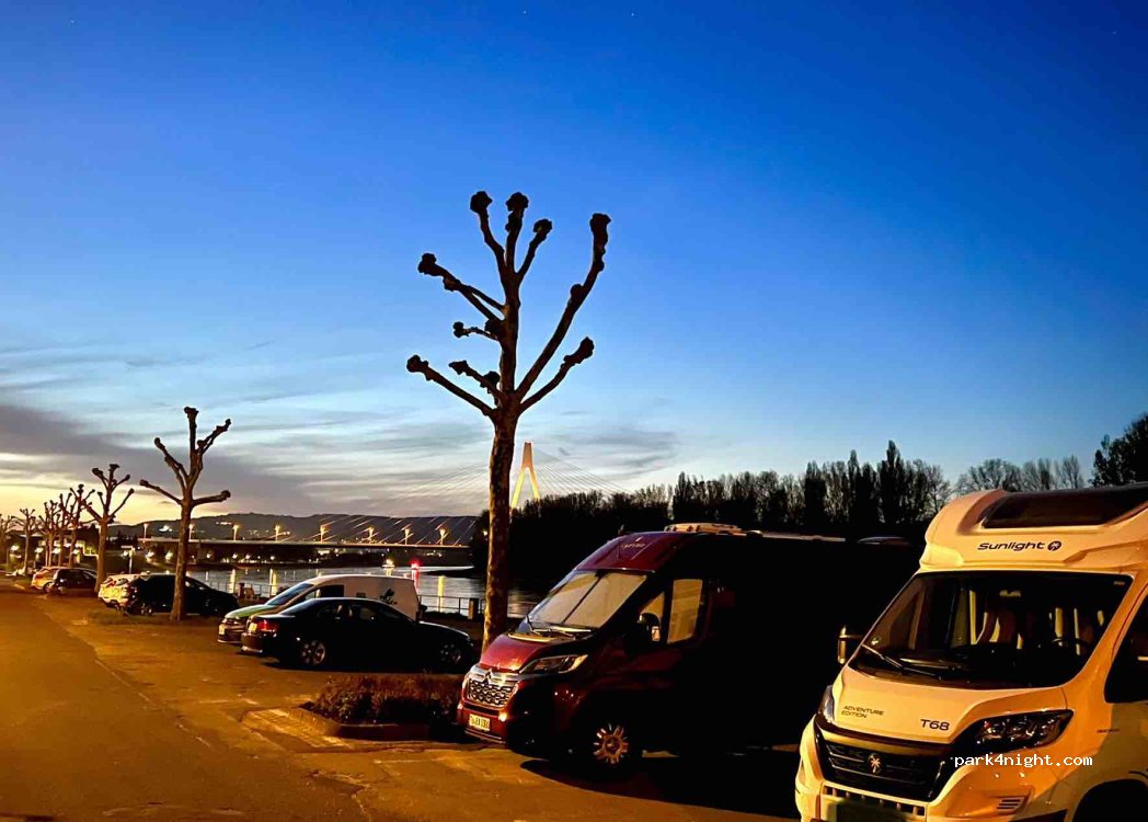 Wunderschöner ruhiger Parkplatz. Stand hier für eine Nacht u hab mich sicher gefühlt. Super Lage direkt am Rhein. Schöne Promenade um am Wasser zu laufen oder Rad zu fahren. Bin spät abends angekommen, war noch genug Platz!