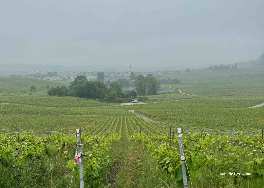 Een schitterende en stille overnachting plaats met vlakke betonnen ondergrond. De weg er naartoe is smal en eigenlijk voor landbouw voertuigen geschikt. S'ochtends om 9:00 hoorde je pas de wijnbouwers (champagne) met hun machines.