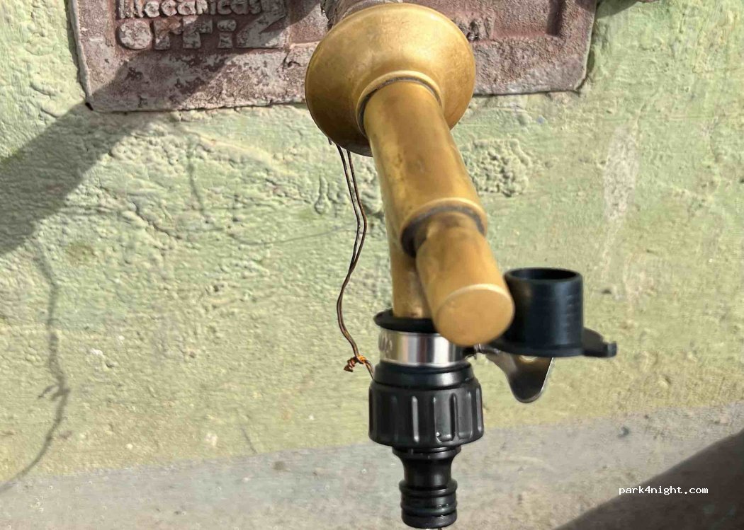 Água potável com bastante pressão. É possível estacionar logo ao lado e encher o tanque com garrafas e funil.
