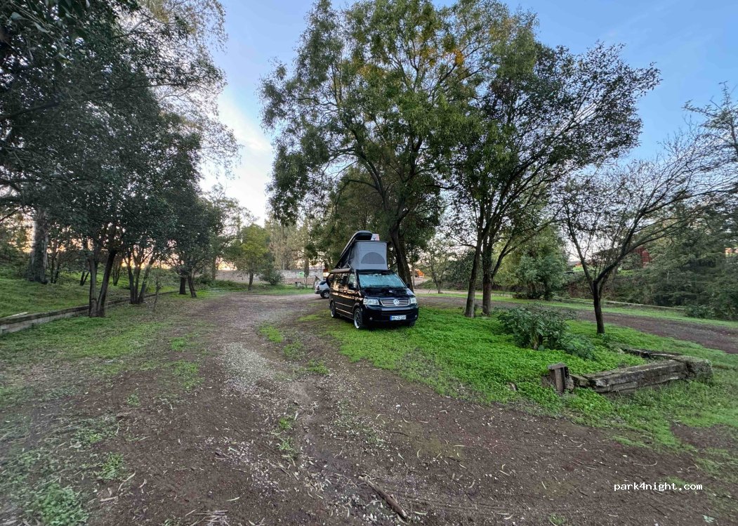 Spot très sympa tout proche de Rôme! Nuit tranquille et en sécurité. Route dégradée, mais tout le monde passe en allant doucement. Il y a des arbres ce qui est appréciable. Effectivement, à partir de 7h00 il y a du passage, et les chiens aboient la nuit pour ceux qui ont le sommeil léger. On le savait à la vue des autres commentaires et cela ne nous dérange pas, donc endroit parfait pour nous!