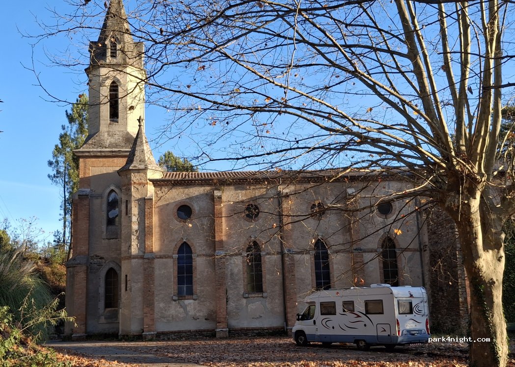 Parking next to the quiet church. Located in the village of La Vernarède, a former mining village, a lot of remains from the construction of the mines