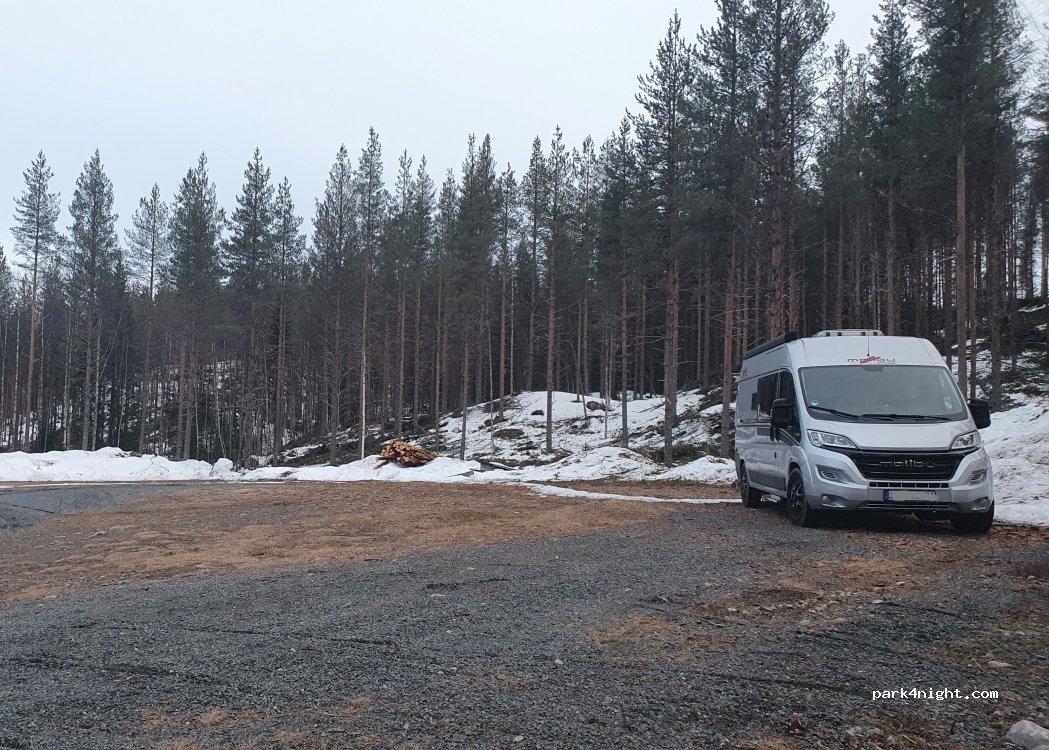 Südlicher Parkplatz des Fulufjället Nationalpark. Ein Picknickplatz und Lagerfeuerstelle vorhanden. Zufahrt über 11 km Schotterstraße in gutem Zustand.