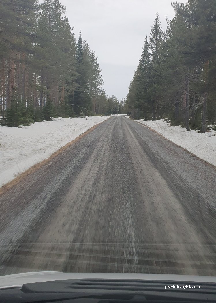 Official south car park of the national park. Picknic table and bonfire place on site. Access by 11 km gravel road in good condition.