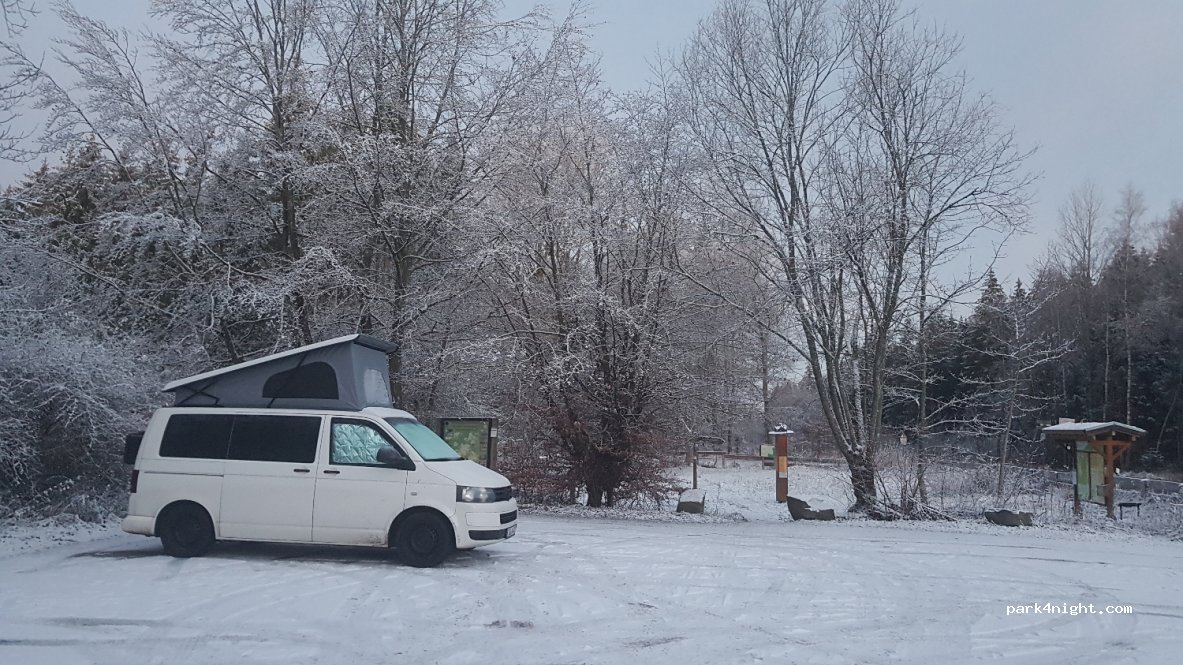 Very nice parking lot. Unfortunately right on the main road. As a result, from 7 a.m. during rush hour. Forbidden to stay the night
