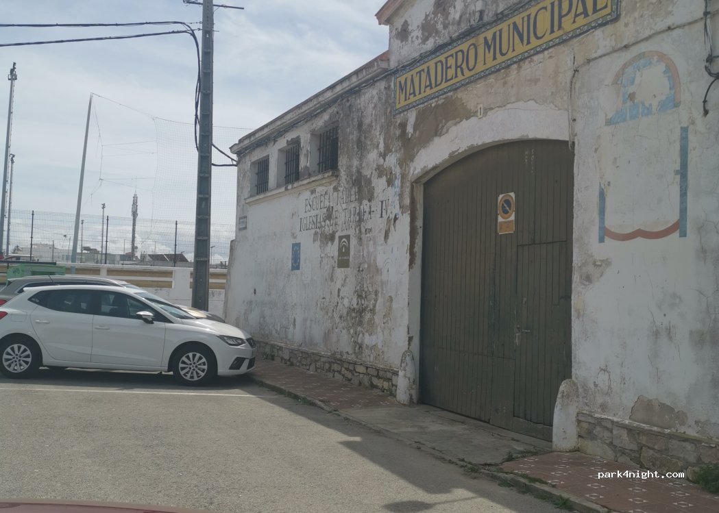 Gepflasterter Parkplatz mit ca. 40 Plätzen und Mülleimern. Die Parkplätze sind klein (5 Meter tief und 2,5 Meter breit), also nur für kleine Vans. Die Gegend ist ziemlich eben, also auch gut zum Schlafen. 15 Minuten zu Fuß zum Zentrum / Strand von Tarifa.