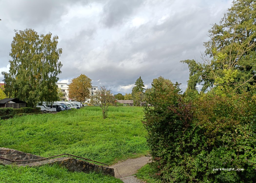 Gravel on the ground. Beautiful spot by the lake. Public beach not far, the public swimming pool is also right next door. The historic city center is not far. Welcoming meadow for picnics and others. Follow the signs for P5 (Hallenbad).