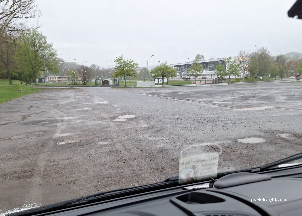 Einfacher, geschotterter Parkplatz in ruhiger Lage. Ein Lidlmarkt ist fußläufig zu erreichen.
