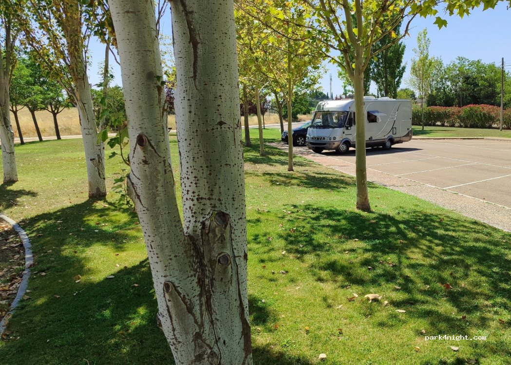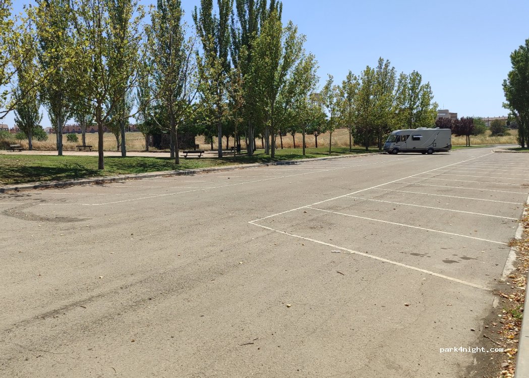 Una delle migliori soste fuori da Saragoza. È un parcheggio pianeggiante ai bordi di una strada trafficata di giorno ma tranquilla la notte. La strada e il parcheggio sono separati da alberi e siepi. Ci sono dei giochi per bambini, fontana e un po' di prato perfetto per chi ha un animale. Nulla di entusiasmante ma ok come sosta fuori Saragoza. Qualche abbaio di cane ma abbiamo dormito bene.