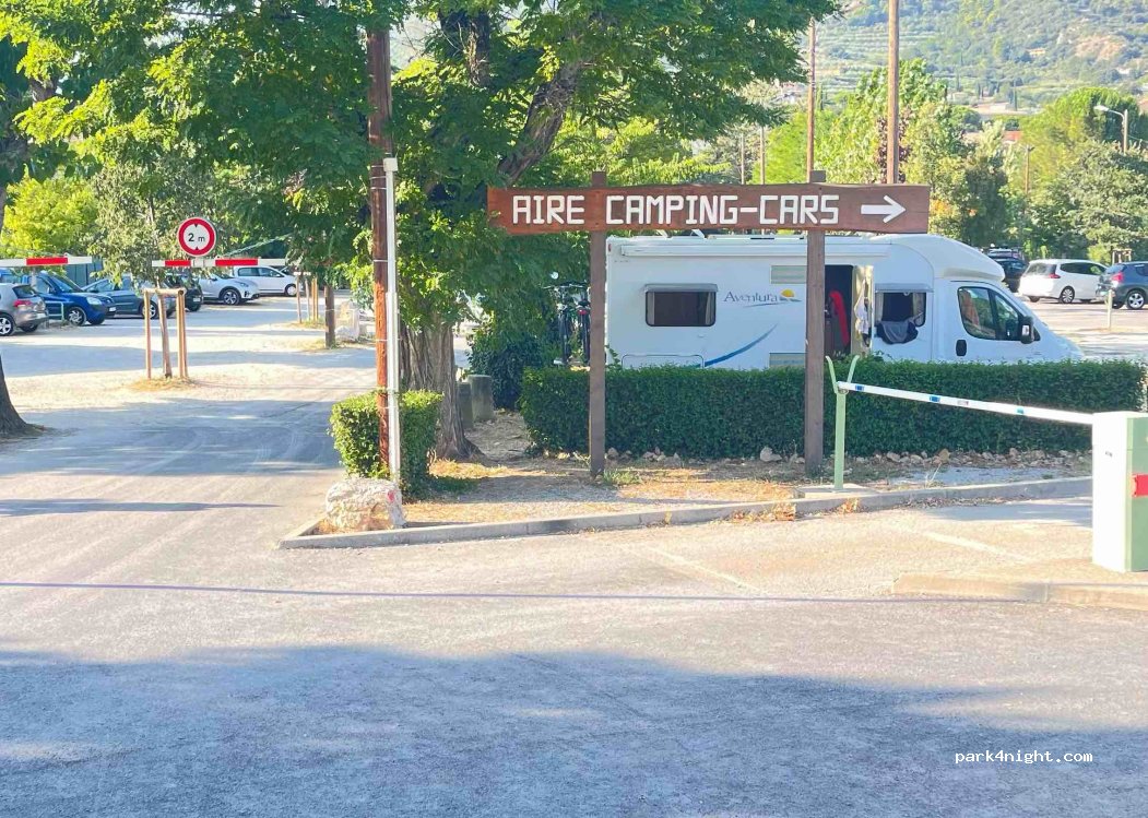 Très bien si l'on souhaite passer une nuit.Accès facile.Emplacements assez grands,aire très propre, code Wifi sur ticket de stationnement. Nous avons pu visiter Nyons tranquillement,et il y a beaucoup à faire.