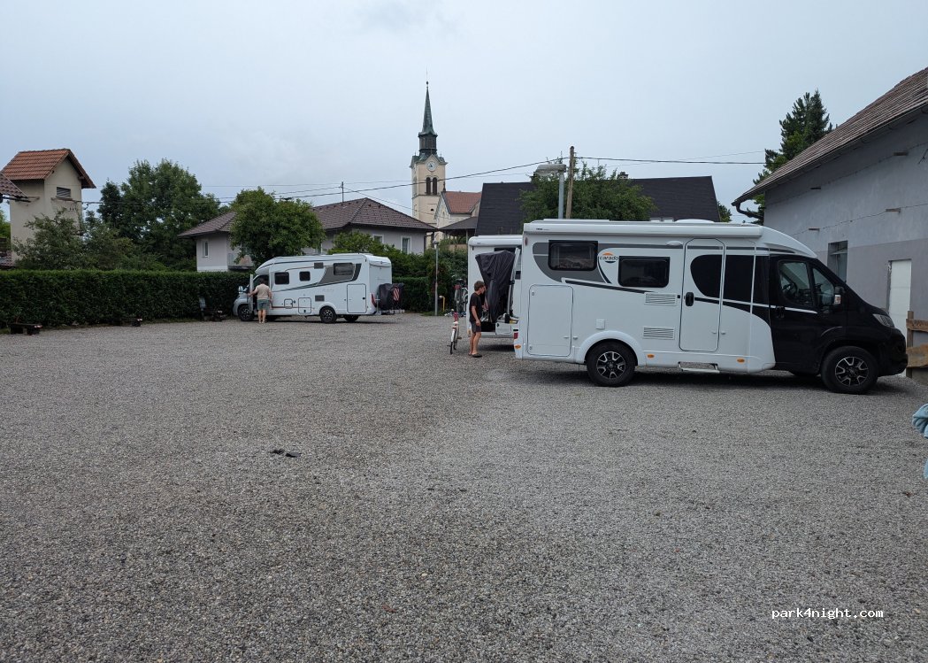 Electricity that costs 4 euros, free wifi, 25 euros per night and you can eat in a restaurant for that amount and then parking is free. 8 kilometers from the city center of Ljubljana in a small town in the suburbs of Ljubljana. You should arrive early, there are only 8 places and towards the evening it fills up completely. very good place, peaceful with all services,good location for motorhomes