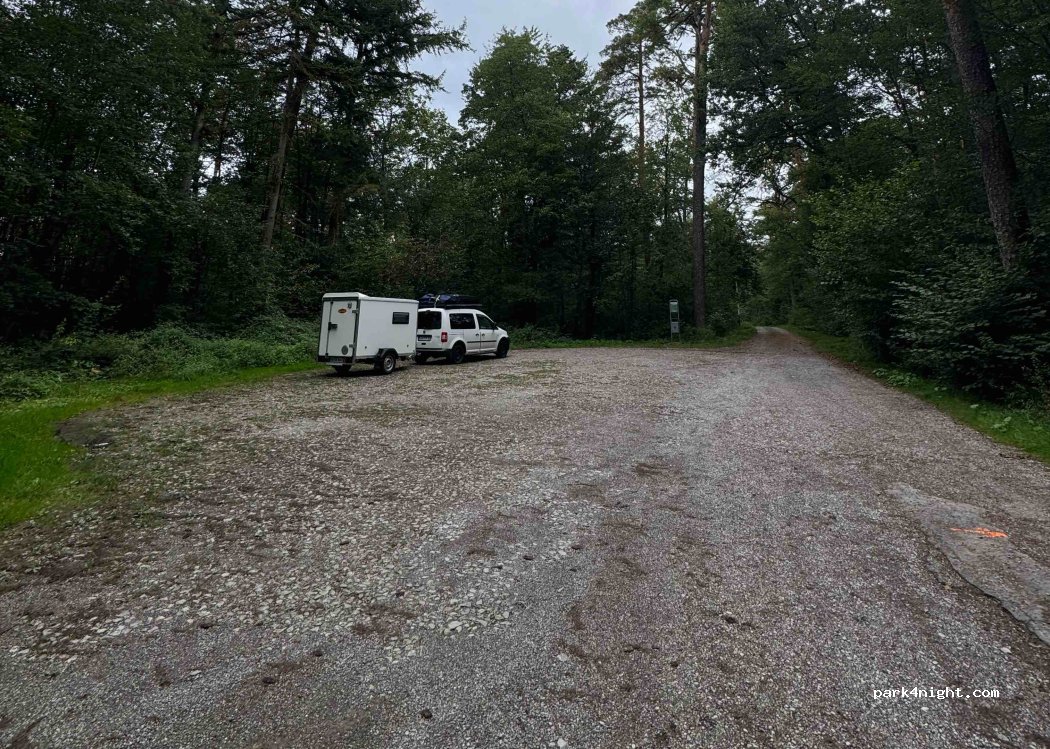 Toller, sehr ruhiger Parkplatz . Fläche ist leicht schräg. Wanderer und Hundebesitzer kommen ab ca 9.00. Hundekot Abfalleimer vorhanden, sonst nix.