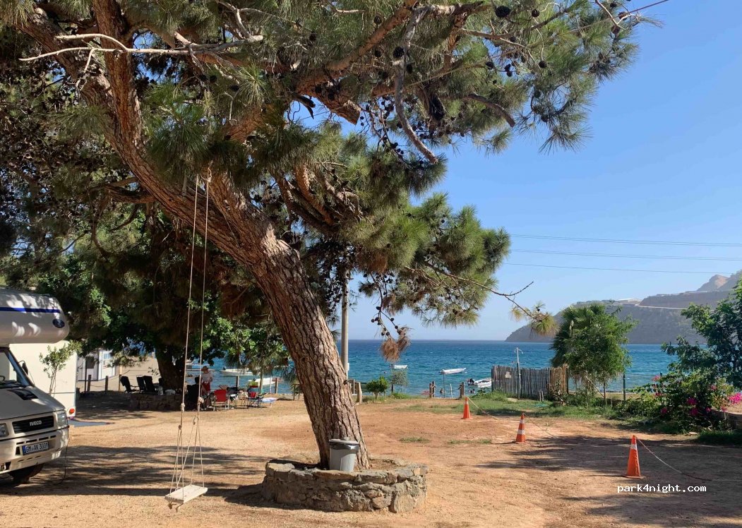 Der Eigentümer ist sehr nett, es ist sehr sauber und fast direkt am Strand. Allerdings hat das mit einem Campingplatz wenig zu tun. Es ist faktisch der Parkplatz vom Restaurant. So groß sind auch die "Stellplätze". Dafür soll man 30€ zahlen. Sind weiter und haben kurz danach etwas viel schöneres kostenlos gefunden. Zufahrt eng. Mit 6m aber okay.