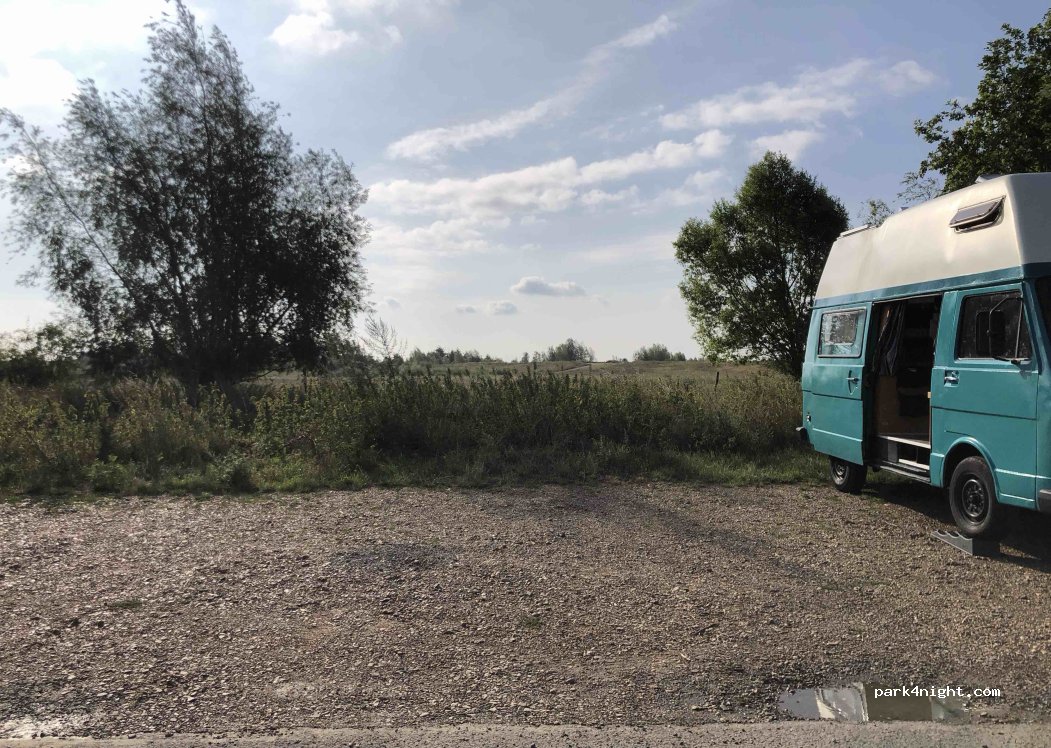 Wir hatten eine toll, ruhige Nacht hier verbracht. Es liegt außerhalb im Grünen auf einem Schotterparkplatz, man belästigt niemanden und wird nicht belästigt Toller Platz! Es gibt übrigens auch mehrere Plätze dort.