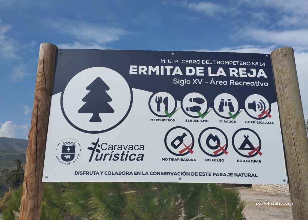 Beautiful viewpoint and picnic area of the Virgen de la Reja hermitage, at the top of the mountain. There are several stone tables to eat, lots of trees, and a couple of containers. Ample space to park on flat ground. The civil guard sometimes passes but they don't say anything. Super quiet place with little influx of people, someone sometimes comes to the viewpoint and little else. Easy access across town, on streets wide enough for a standard motorhome or van. Caution: strangely, the gps will not take you to the hermitage itself, it will indicate the destination a little lower, as if it could not be accessed, but you can continue up without problem.