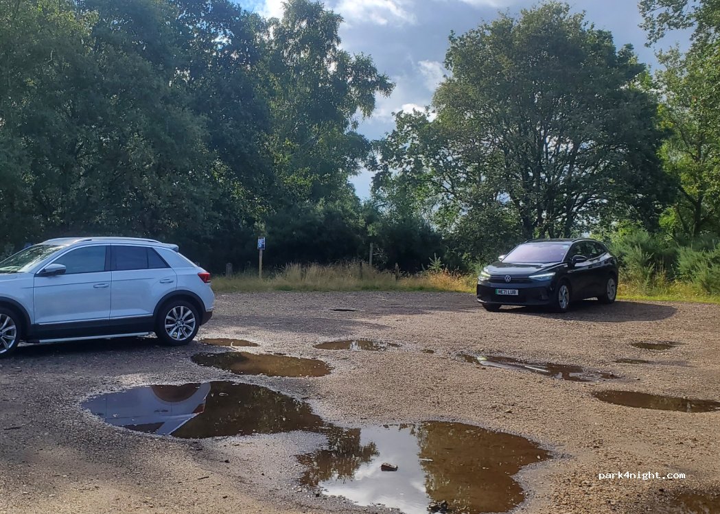 Public car park, popular with walkers in daytime and mornings. Flat. Height restriction so only campervans.
