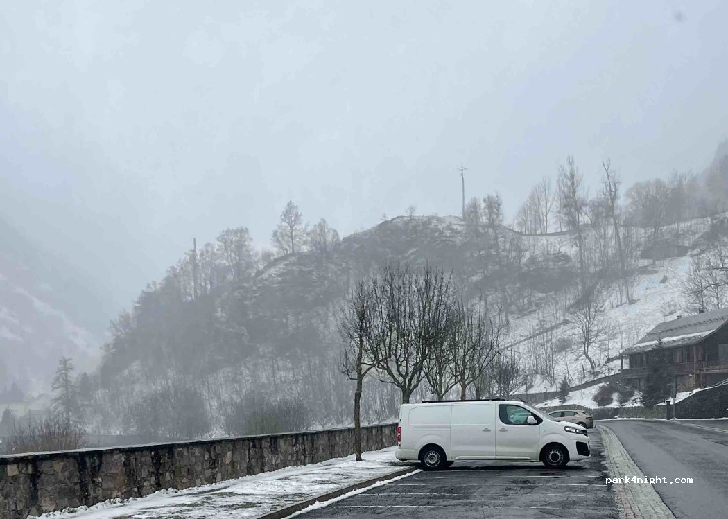Parquing molt aprop de poble, com mès amunt menys inclinació. 10€ 24h autocaravana 7€ 24h vehicle. Parquimetre al costat.