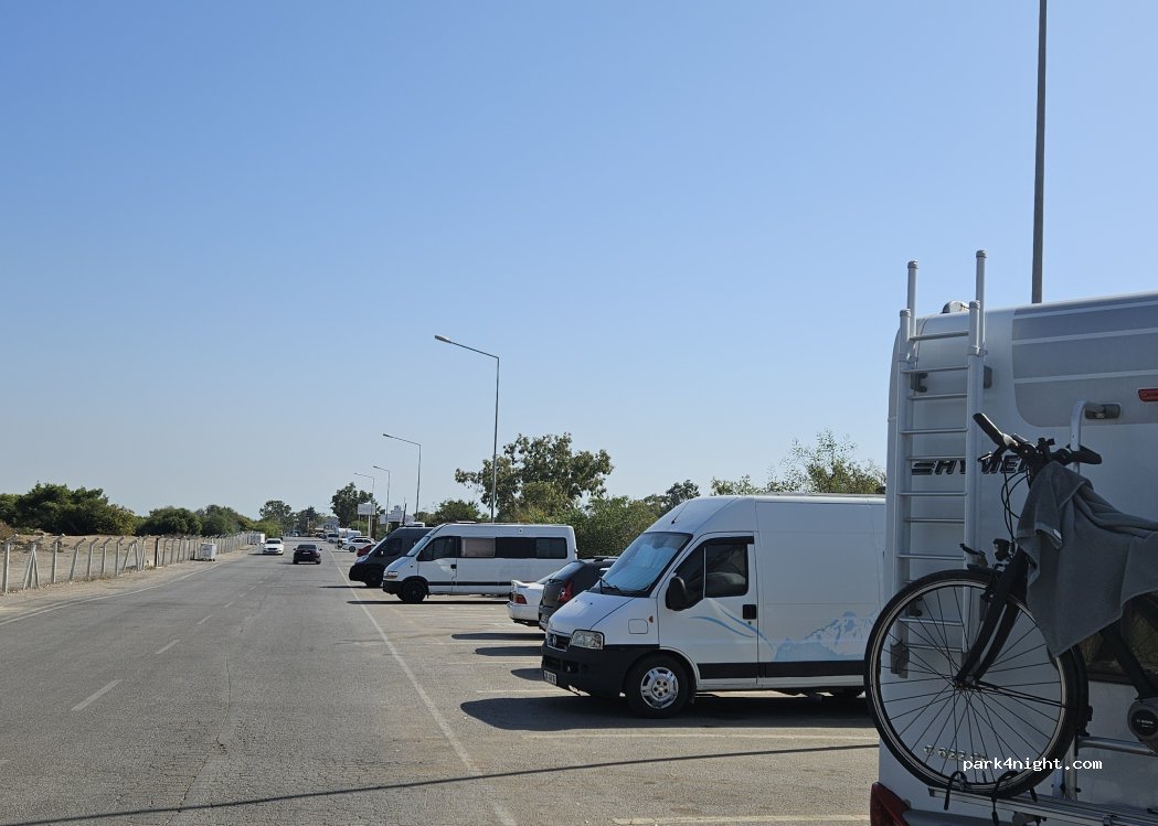 yol kenarında kilometrelerce süren otopark mevcut. biz 12 metrelik otobüsümüzü rahatça parkettik. piknik alanı ve sonrasında plaj mevcut. tuvalet, duş, bulaşık yıkama alanı ve temiz su mevcut. yaz mevsiminde kalabalık ve hırsızlık tehlikesi olan bir alan ama sezon dışında sakin ve güvenli.