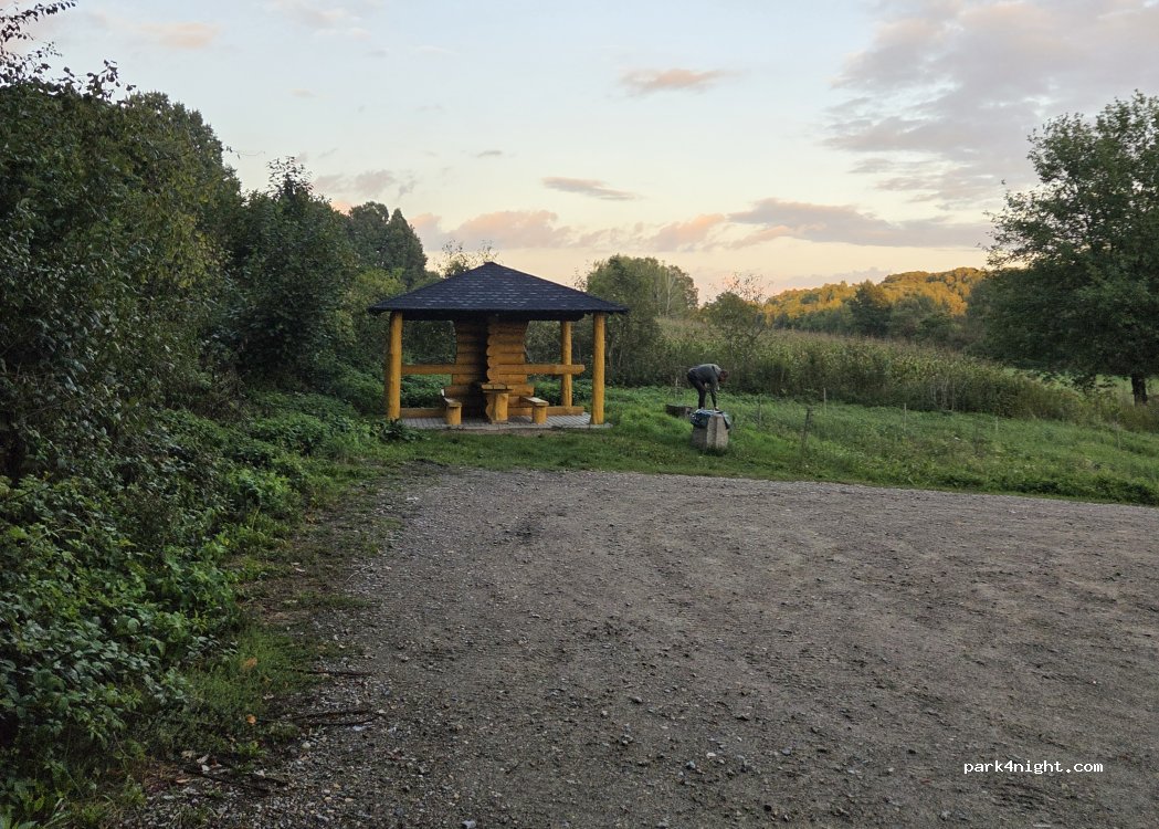 Schotter-Parkplatz, sehr abschüssig, direkt an der Straße, tagsüber viel Verkehr, nachts ausreichend ruhig. Der Platz wird viel für kurze Pausen und Fahrgemeinschaften genutzt. Begrenzung auf 3,5 Tonnen. Starlink-Verbindung gut. Überdachte Sitzgelegenheiten. Mülleimer vorhanden.