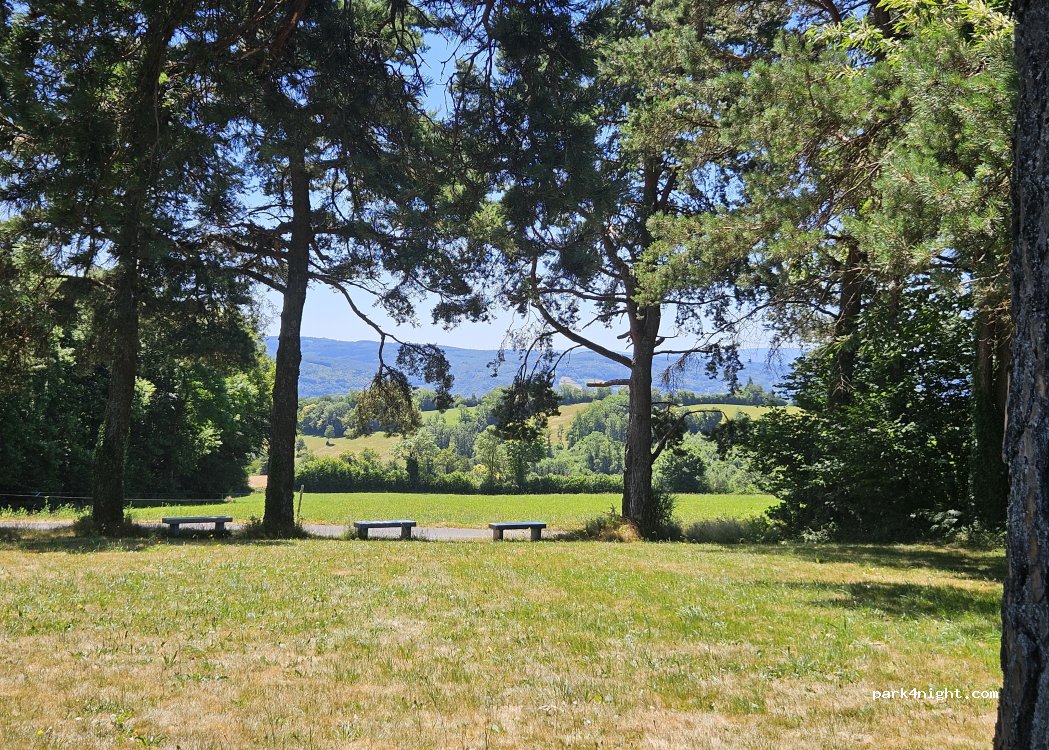 une nuit au calme, seul,une vue à 360 sur les collines. nous nous sommes posés en bordure du bois dans l herbe. Aucun service.