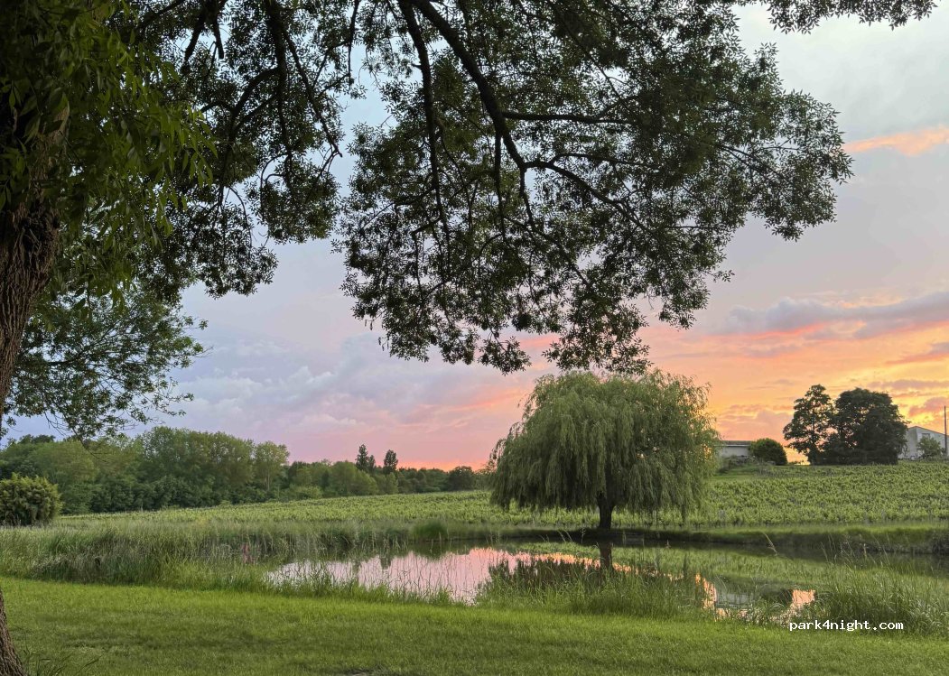Hôte accueillant et très sympathique. Il a pris le temps de nous faire visiter son domaine et de nous donner pleins d’explications. Toilettes propres. On dort à côté d’un petit étang à l’ombre des arbres, couché de soleil magique sur les vignes ! (/!\ moustiques).