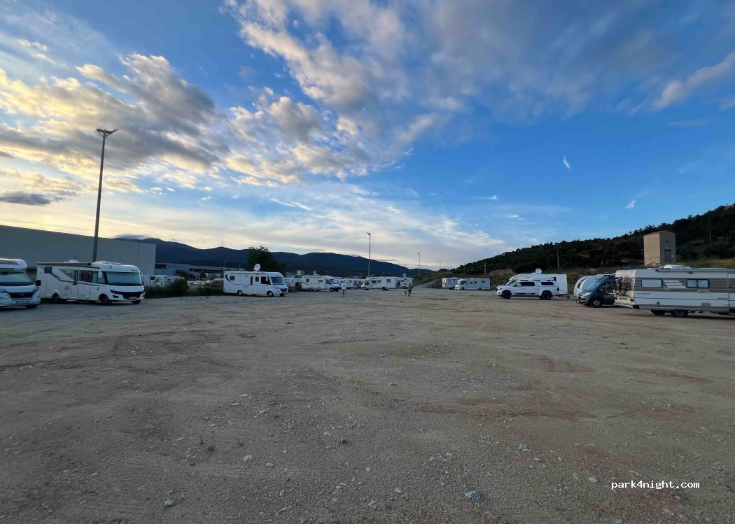 Très bon emplacement pour faire ses courses au gran jonquera. Calme et sécurisé nous étions entourer d’un grand nombre de camping car. Pas de barrière de hauteur, nous avons passer une nuit tranquille.