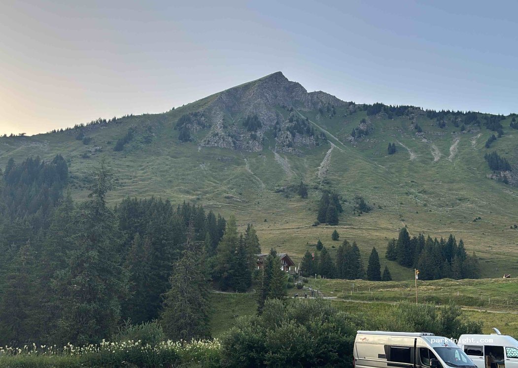 Très bel endroit, avec vue sur le massif des Diablerets et ses deux téléphériques. Très bon spot pour partir en randonnée. Peu de voiture s la nuit (nous étions seuls) par contre le parking se rempli vite dès le matin de randonneurs.
