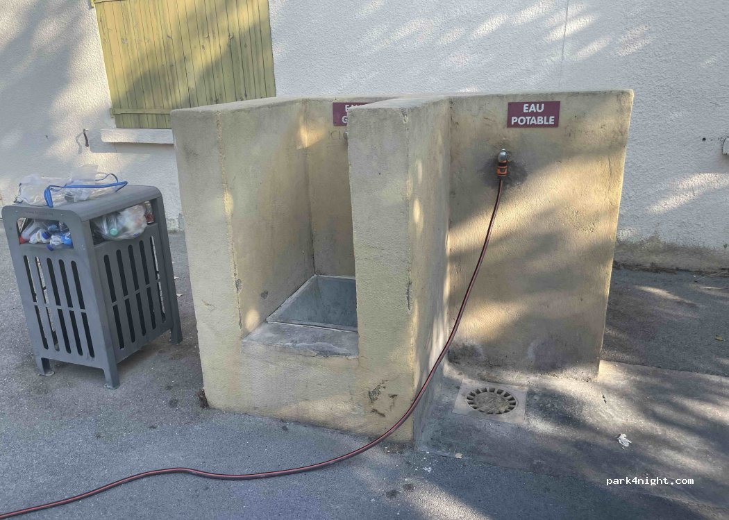 Aire propre avec vidange à proximité du centre ville ce qui est rare dans le sud de la France... nuit calme mais réveillés tôt par le club de pêcheurs (local situé situé sur la même aire)