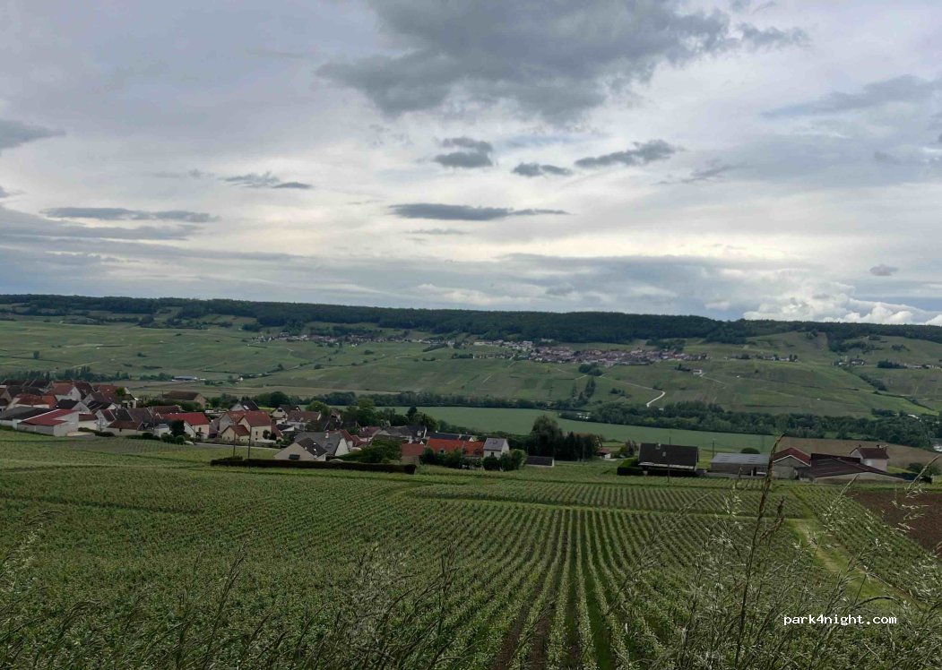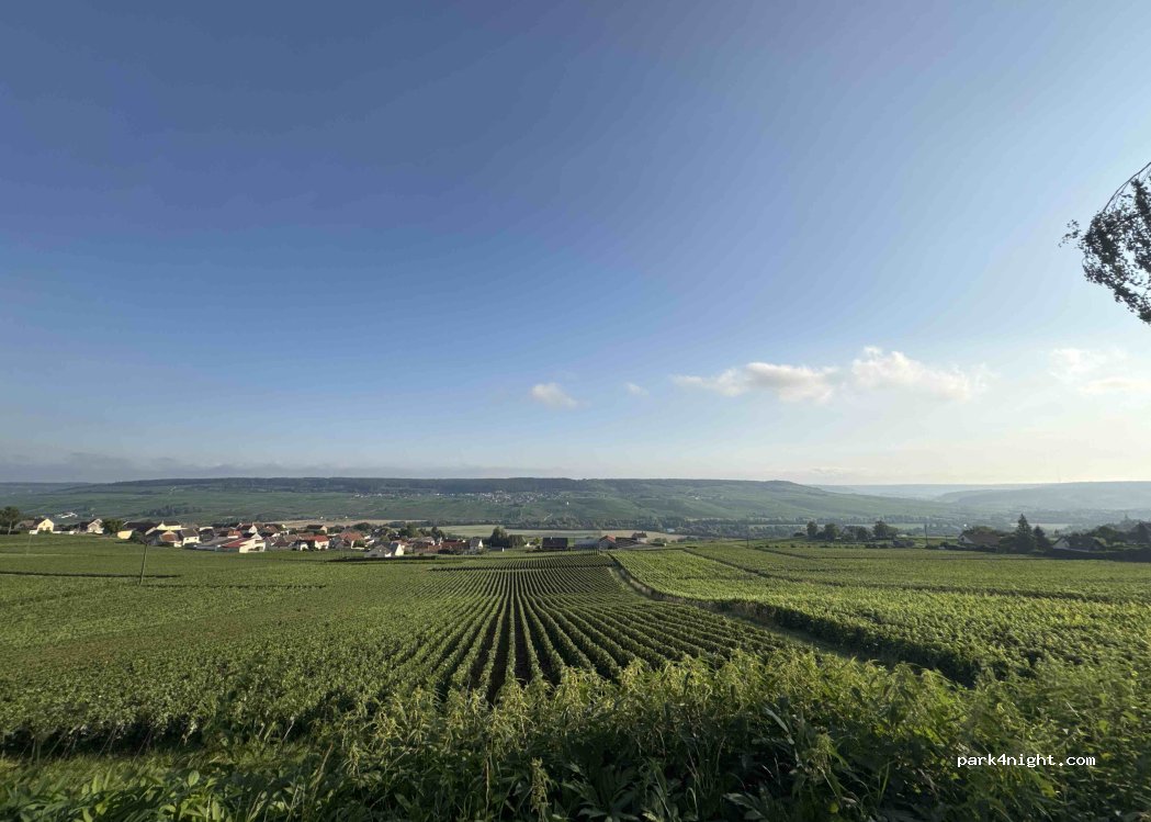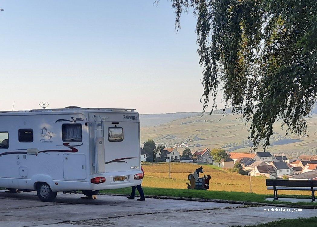 Belle vue sur les vignes voisines. Possibilité de garer jusqu'à trois campeurs. Bel endroit pour se promener. Il y a une poubelle, des bancs et 2 tables et une est même couverte! Il est très proche de la route et peut donc être occupé pendant la journée, mais très calme la nuit. Près des maisons aussi mais trop loin pour les entendre ou les déranger.