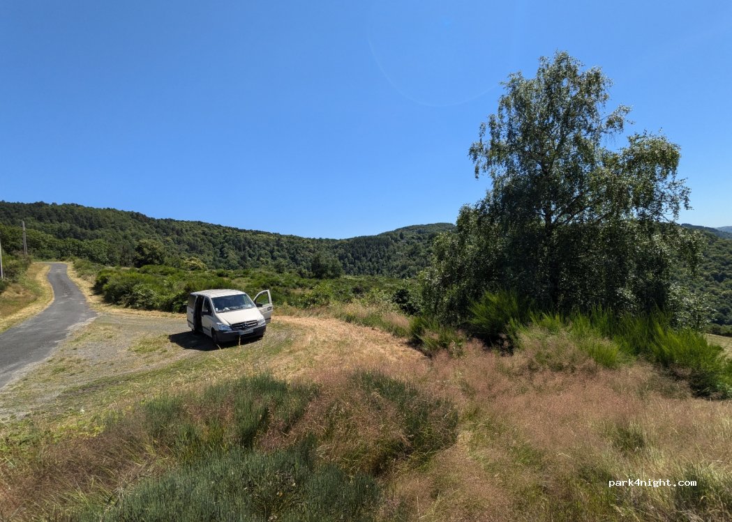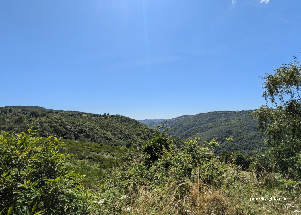 Vu magnifique sur les gorges de la truyere et sur le château valons avec bon emplacement pour dormir. la route est une impasse qui donne accès a un lieu dit donc aucune circulation