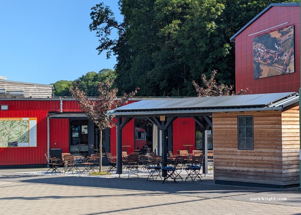 Eigentlich ist schon alles gesagt worden: Einfach phänomenal, was Arfeld da auf die Beine gestellt hat. Tische und Stühle stehen beim Eisenbahner-Café zur Verfügung, dort ist Selbstbedienung und man zahlt auf Vertrauensbasis. Die Sanitäranlagen oder eigentlich besser: Das Badezimmer, ist tipptopp. Für die Benutzung wird um eine Spende von 2€ gebeten.