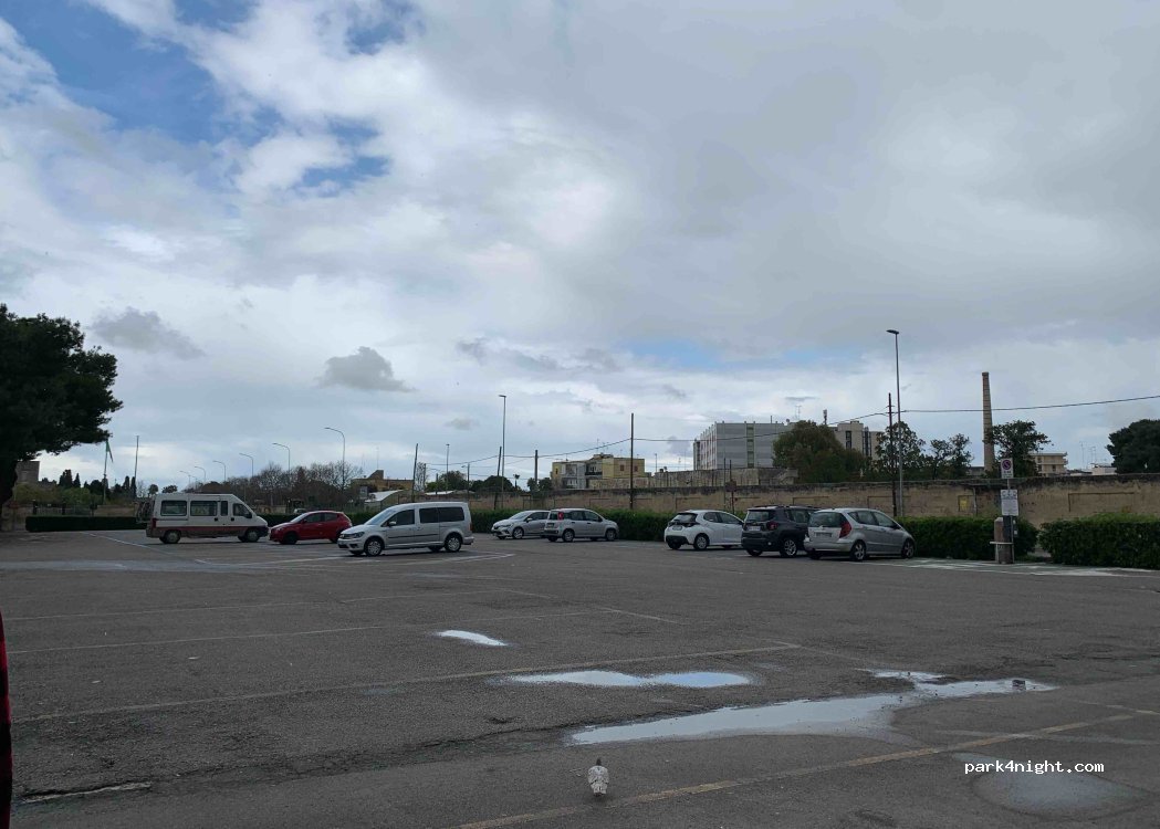 Parcheggio vicinissimo al centro. Abbiamo parcheggiato di giorno per andare a visitare Lecce e cenare per poi ripartire in serata per il troppo movimento di persone. Non ci sentivamo sicuri a passare una nottata lì. Non ci sono parcheggi per camper.