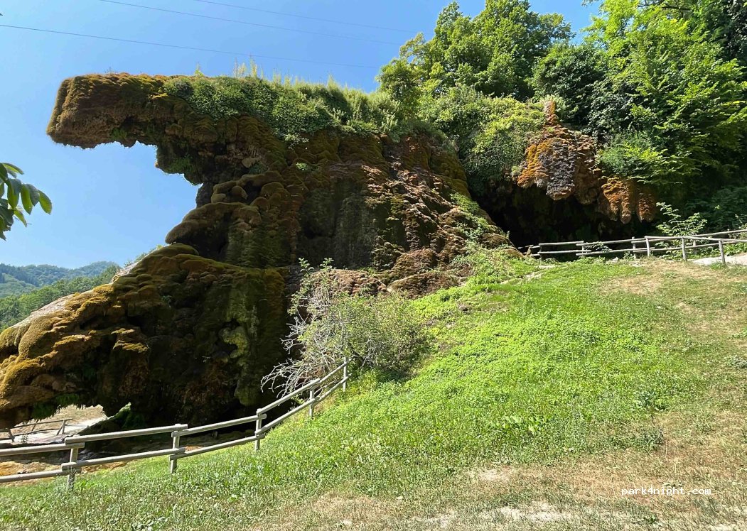 Parcheggio della grotta e delle cascate del Lebante, in ghiaia, acqua possibile solo con taniche, alcuni tratti impegnativi ma fattibili anche con mezzi di grandi dimensioni, attenzione in inverno!