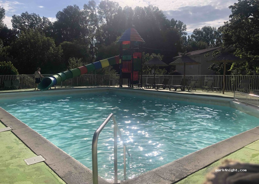 Camping muy familiar, con buena sombra y piscina que nos vino de maravilla tras el largo viaje y el calor. Instalaciones muy básicas, 34€ en total 2 personas y autocaravana. El pueblo muy feo pero el paseo a orillas del Rodano precioso.