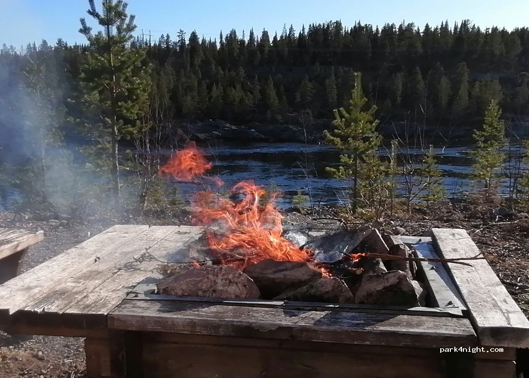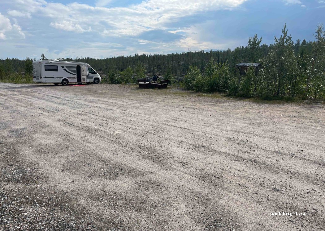 Stellflächen entlang des Flusses, gut zuerreichen von der Hauptstrasse. Herrlicher Ausblick und sehr ruhig hier. Es gibt einige Feuerstellen und teilweise auch Bänke. Ich würde behaupten baden ist aber aufgrund des Hanges eher schwer, je nachdem wo man steht... nicht weit vom Muddus Nationalpark Eingang entfernt
