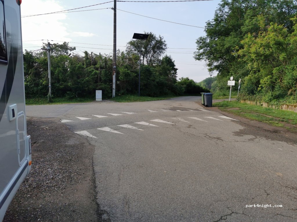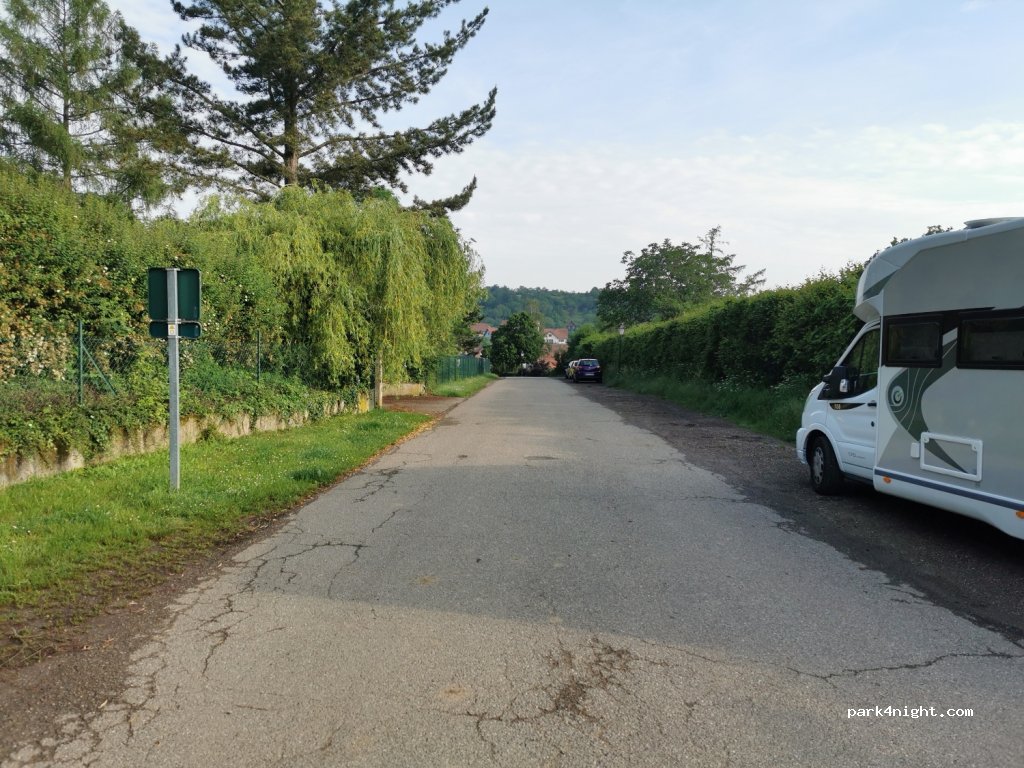 Parking bord de route à l'écart du village pour nuit ou balade. Proche cimetière juif en lisière de forêt. Convient à tous gabarits de